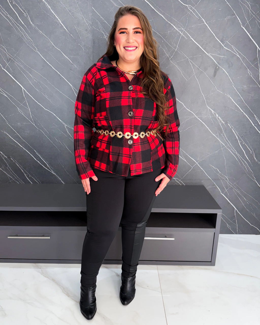 Este Casaco Plus Size feito no tecido de lã flanelada, que é um tecido encorpado, macio e ideal para dias frios!