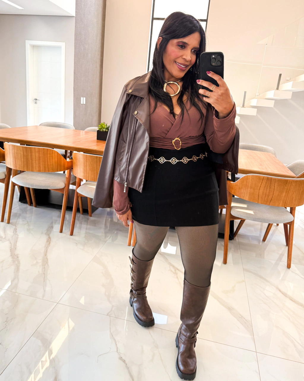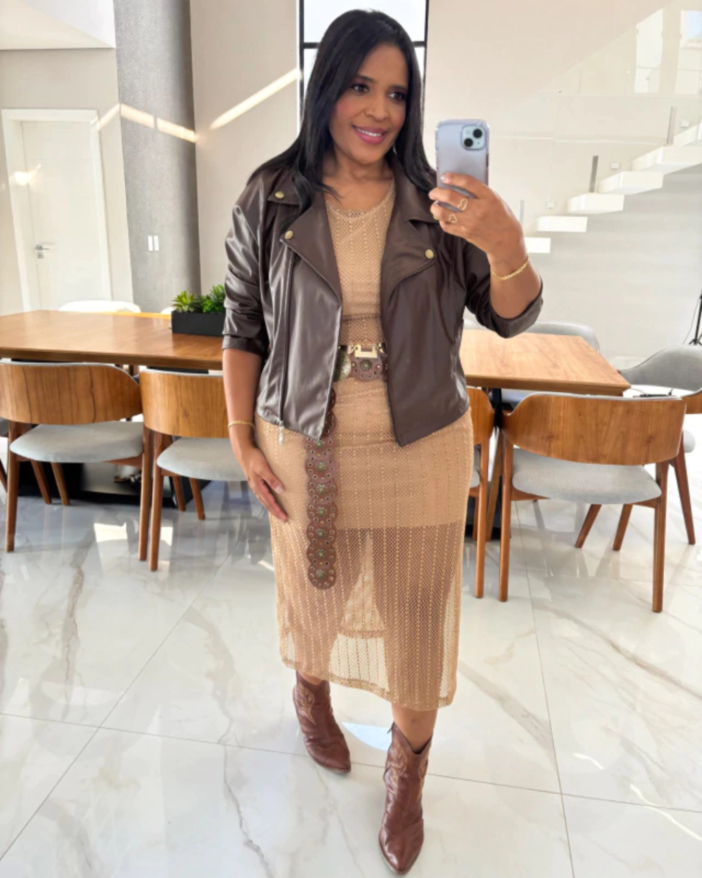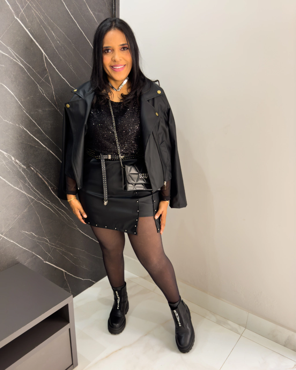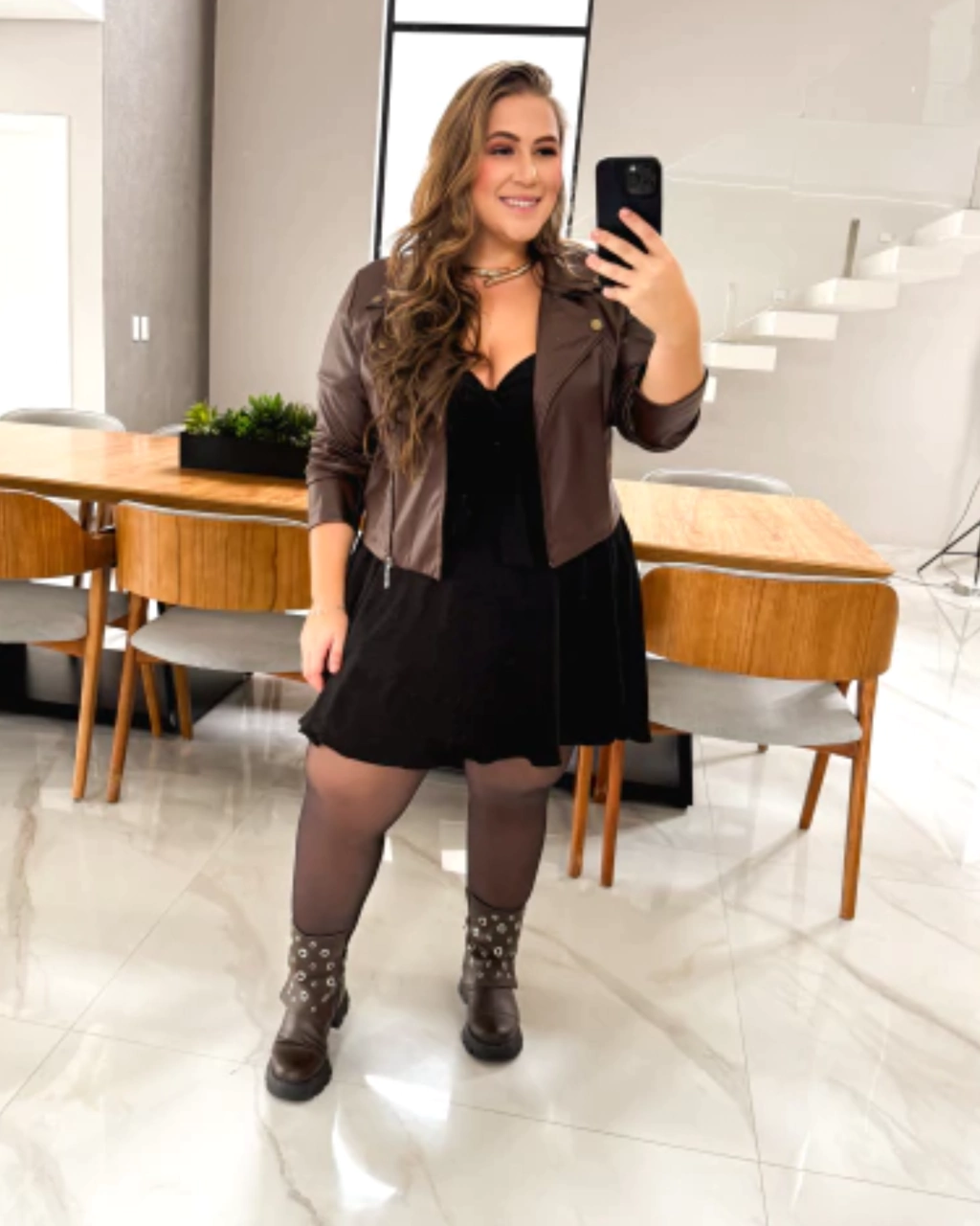 Esta Jaqueta Plus Size feita no tecido de couro PU, que é um tecido leve, sem elastano, macio e bem confortável!
