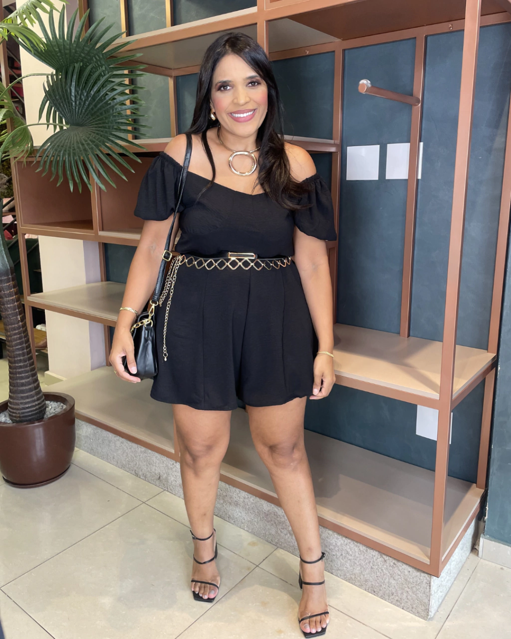 Este Macaquinho Plus Size no tecido de crepe, que é um tecido fluido, macio e super confortável!