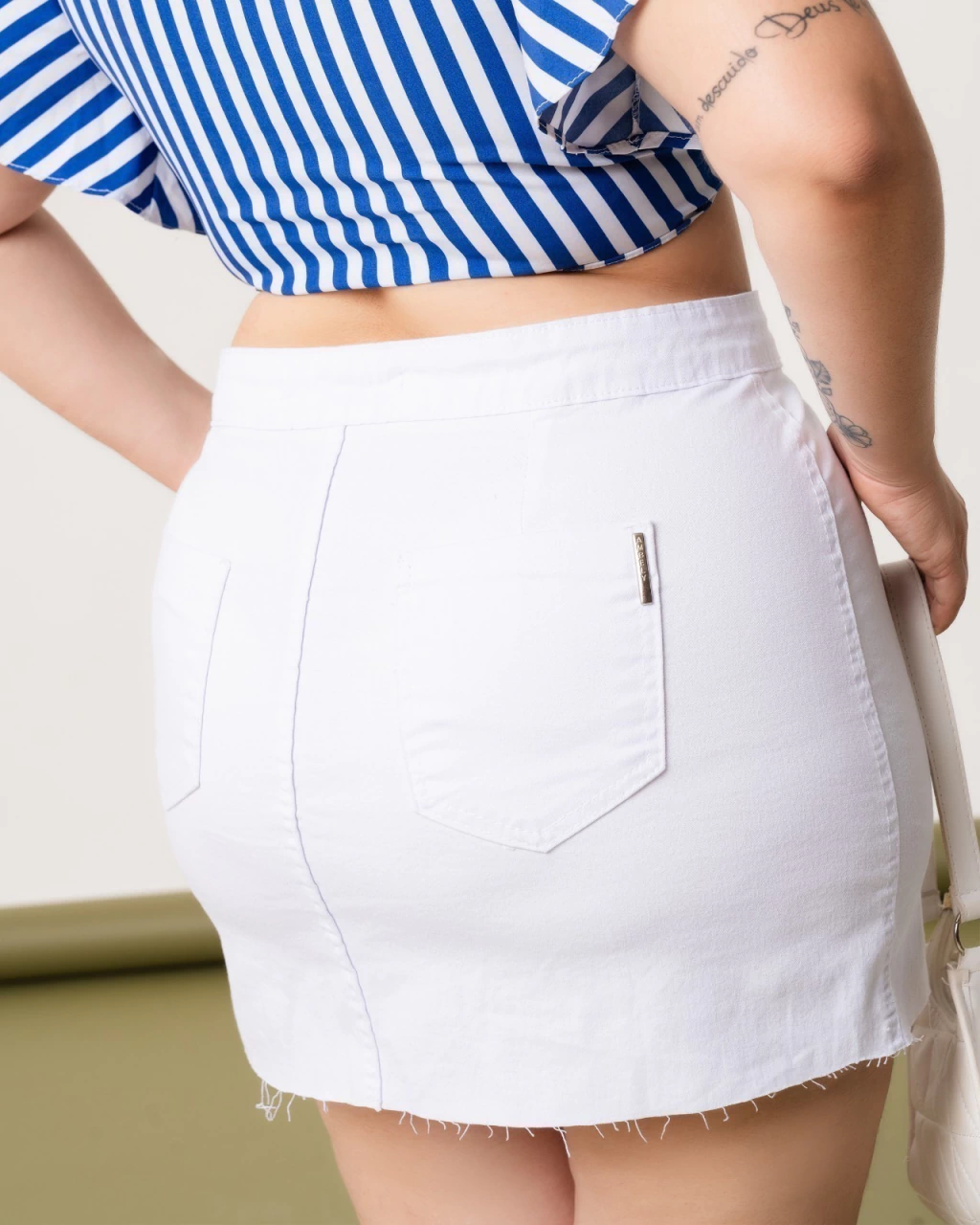 Esta saia Plus Size é feito no tecido de brim, este tecido é resistente, possui elastano e confortável!