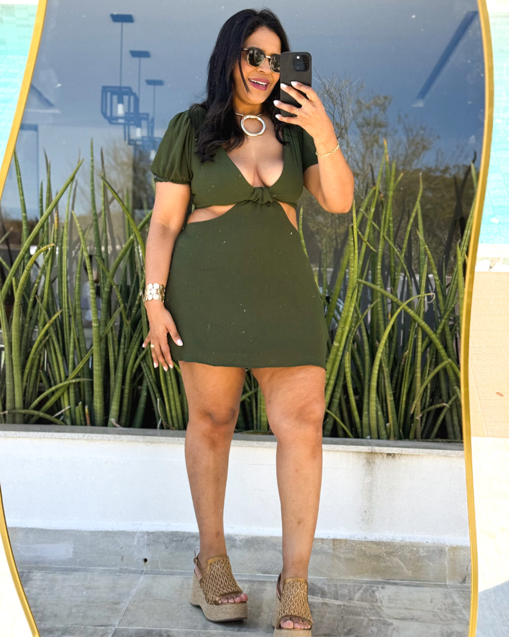 Este Vestido Macaquinho Plus Size em tecido de crepe, que é um tecido super leve, fresquinho e confortável.